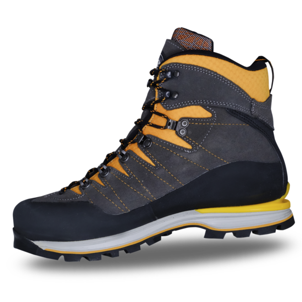 Keď vás vaše ambície zavedú do náročného terénu. potrebujete topánky. aby ste sa vyrovnali tejto výzve. Presne na to sú tieto topánky určené. Začnime s exkluzívnym dvojvrstvovým jazykom Meindl Air Revolution® so vzduchovými kanálikmi na zlepšenie ventilácie. ktoré pomáhajú regulovať vnútornú teplotu. Tento inovatívny jazyk umožňuje cirkuláciu vzduchu do topánok a v podstate odčerpáva horúci vzduch vždy. keď urobíte krok. Tieto nezateplené topánky sú určené na celoročnú turistiku a trekking a do náročného terénu. Membrána Gore-Tex® poskytuje 100-percentnú vodeodolnú ochranu pred snehom. dažďom. orosenými lúkami a plytkými potokmi. Má protišmykovú podrážku Vibram® Alpin Rigid Rubber pre bezpečnú trakciu a mäkkú polyuretánovú klinovú medzipodrážku absorbujúcu nárazy. ktorá tlmí skalnaté chodníky. vložka Air Active® obsahuje pamäťovú penu. ktorá sa prispôsobí tvaru vašich nôh a rovnomerne rozloží váhu po celom povrchu; navyše je tu vrstva fleece a savá vrchná vrstva. ktorá odvádza vlhkosť. Mäkká manžeta poskytuje pohodlné. podporné pohodlie. zatiaľ čo zvršok z tuhej semišovej kože/sieťoviny poskytuje pevnú podporu. aby vaše členky zostali podopreté nahor. nadol a naprieč. Inovatívny systém šnurovania DiGAfix® zafixuje vašu pätu na mieste a pripevní celý zvršok topánky okolo vášho priehlavku bez stláčania alebo vytvárania nepríjemných tlakových bodov. Vyrobené v Nemecku.