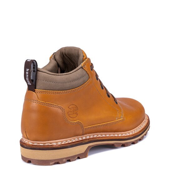 Kofel Mid o eleganckim. ale autentycznym designie to stylowy but o średniej wysokości do codziennego noszenia. Dzięki konstrukcji z podwójnym szwem ma tę samą wysoką jakość i niemal niezniszczalną trwałość. co nasze buty górskie. Niezależnie od tego. czy do pracy. czy na co dzień. buty te nadają się na każdą okazję. Wykonane z cholewki ze skóry nubukowej. podszewki z ekoskóry. miękkiego. wyściełanego mankietu i podeszwy Hanwag ZT o wysokiej przyczepności.
